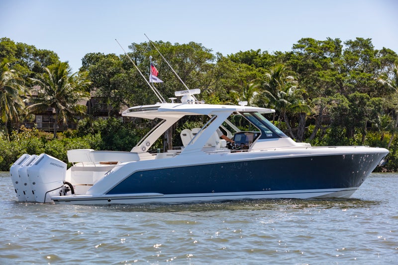 Optioned with Mercury® propulsion packages, experience the joy of motion aboard the 38 LS. Integrated Garmin® Marine navigation systems and joystick piloting provide ease of use for Captain.