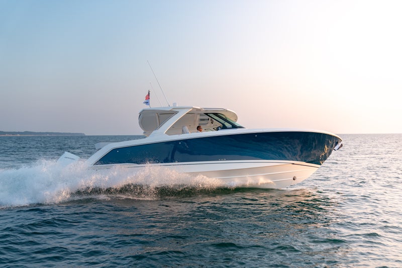 The 38 LS is the reinterpretation of luxury sport yachting, a fusion of sophistication against the demands of day yachting. Featuring walk-around capabilities and wrap-around bow seating above deck, an elegant cabin with berth and private head awaits below. The signature Lounge Module rotates 180 degrees, transforming the cockpit and expanding access to the swim platform. Or option your vessel with the Adventure Module, which features fold-down seating, a coil-wrapped freezer tank, livewell and other fishing amenities needed for a memorable day on the water.