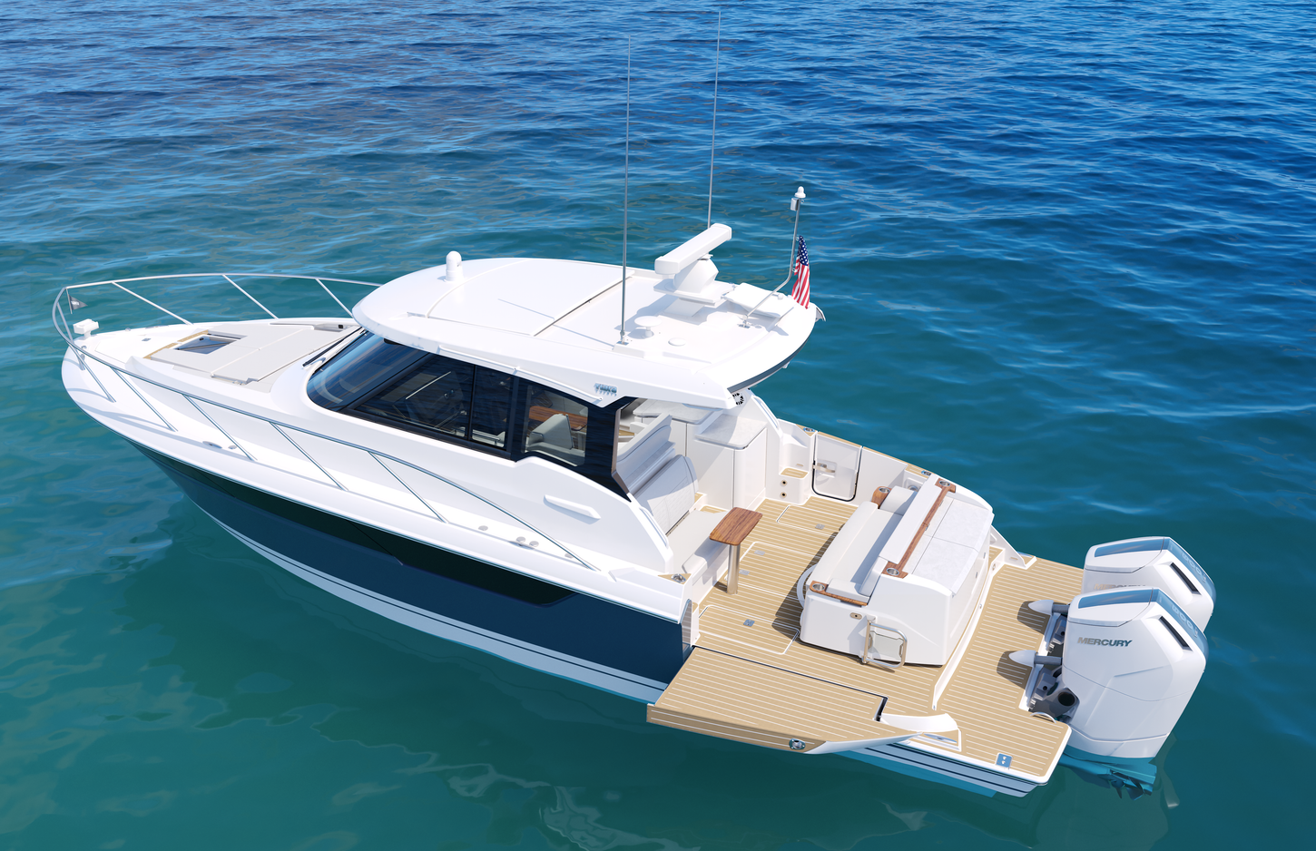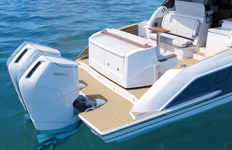 Twin Mercury 600 V12 Verado® outboard engines power the 39 LE with integrated Garmin® Marine navigation systems and joystick piloting. The helm features cutting-edge Garmin 9219 touchscreen display technology, seamlessly integrated with the EmpirBus digital switching system for intuitive and streamlined operation.